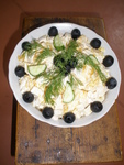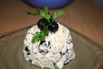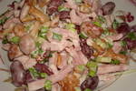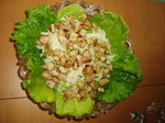 САЛАТ " СЫТНЫЙ" консерв. шампиньоны, курица, лук, морковь, горошек