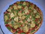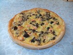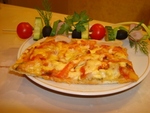 Открытый пирог с тыквой, пеперони и копченым сыром.