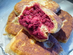 Жареные пирожки с необычной начинкой из фасоли, свеклы и орехов