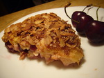 Нежный черешневый десерт с миндальными лепестками и корицей.