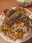 Имбирно-лимонный шашлык-ассорти из курицы и свинины.