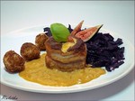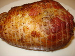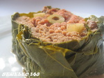 Мясной террин с оливками и чесноком в виноградных листьях.