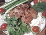 Мясо маринованое на шашлык,но тушёное в духовке.