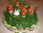 - Украсить салат «грибами» и ломтиками свежего огурца.