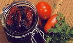 - Разрежьте помидоры пополам и удалите мякоть с семенами. Возьмите огнеупорную большую посуду или глубокий противень. Уложите помидоры в один слой разрезанной стороной кверху. Измельчите в ступке 20 горошин перца, щепотку соли, 3 зубчика чеснока, щедрую горсточку сухого базилика и небольшой пучок свежего орегано. Этой смесью посыпьте томаты в противне и залейте рафинированным оливковым маслом так, чтобы они были на 2/3 погружены вмасло! В разогретой до 190 °С духовке запекайте помидоры минимум 3 часа. Затем уложите их в банку и залейте тем маслом, в котором они томились. Храните помидоры в холодильнике.