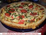 - Сверху можно уложить помидор, предварительно его ошпарить, снять кожицу и нарезать кружечками.