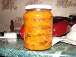 - 4.готовые овощи выкладываем слоями в простерилизованные банки:слой поджарки - слой баклажак.