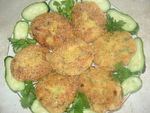 - Из фарша делаем котлетки, обваливаем их в кукурузной муке и жарим в растительном масле до готовности.