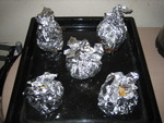 - мясо нарезать на куски, хорошо отбить,посолить и поперчить.На кусочек фольги кладём мясо,смазываем майонезом,в середину кладём немного яблок и сыра (яблоки и сыр порезать на квадратики)и с помощью фольги формируем горшочки.запекать при 180 С 45 мин.